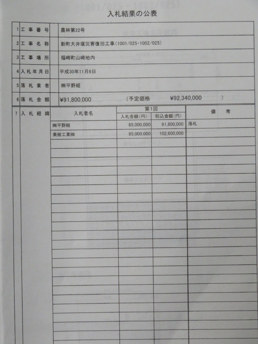 (福崎町の場合、工事予定価格が6000万円以上は議会の承認が必要になります)