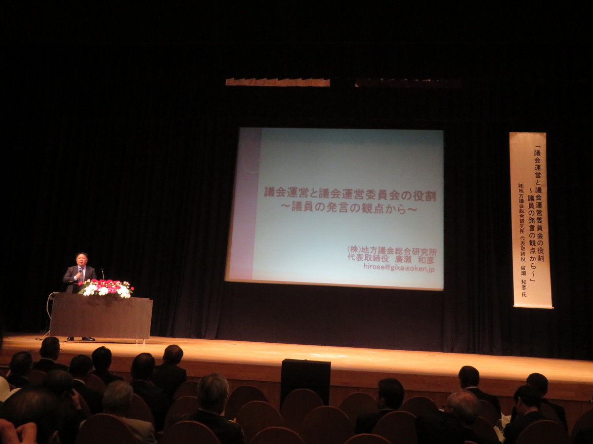 11月7日、兵庫県町議会議長会主催の研修会が市川町で開催でした。