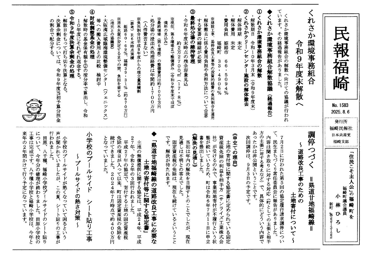 運営をしてきた事務組合の解散への日程が決まってきました。