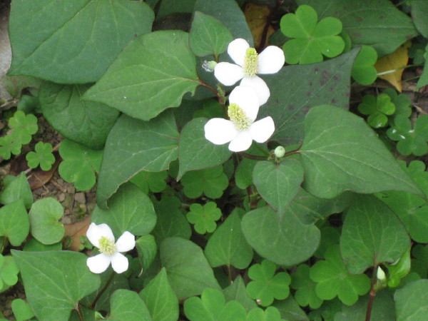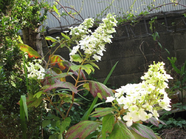 我家の小庭は今、ササユリ、ドクダミ、アジサイです