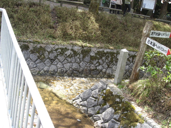 この写真が分岐点です・・・方や日本海、もう一方は瀬戸内海の表示