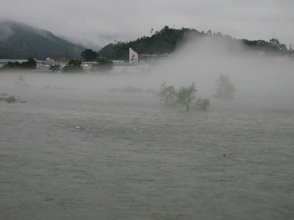 27日早朝、前夜来の雨で市川も七種川も水面から雲が湧き上がるかの様子です
