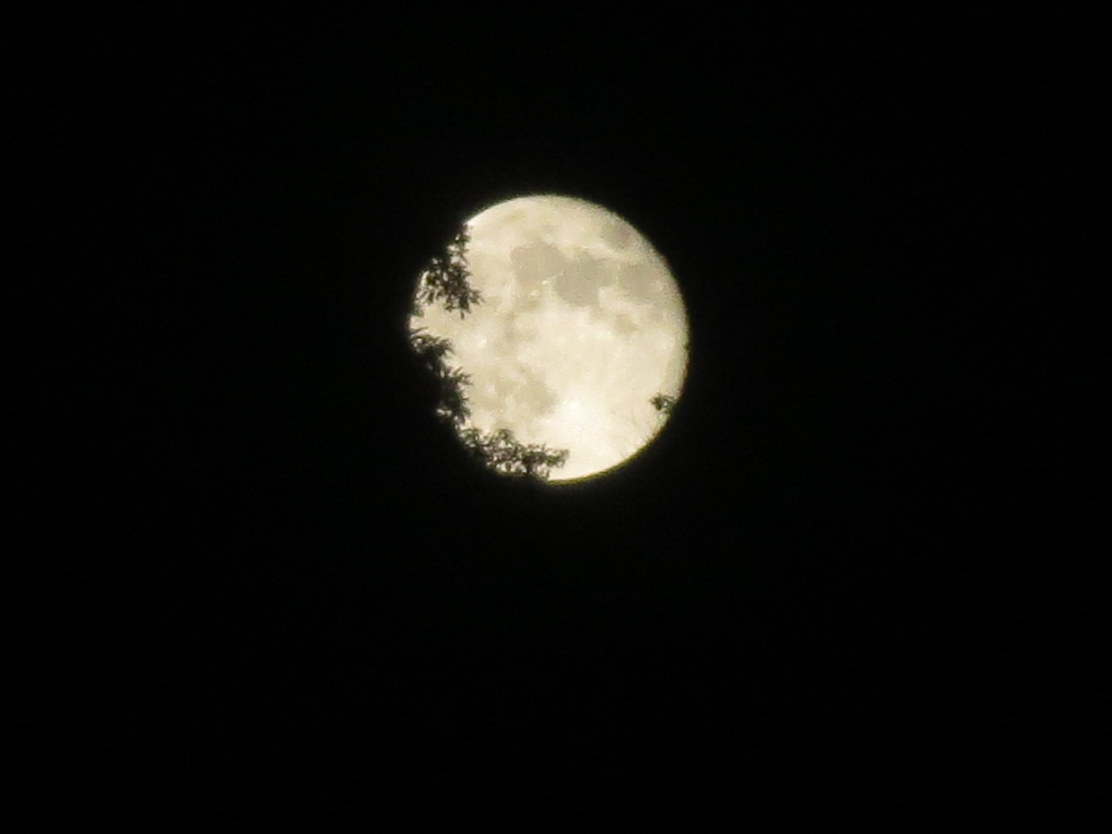 22日、満月状態の月が山の端から出て来ました。