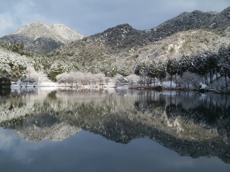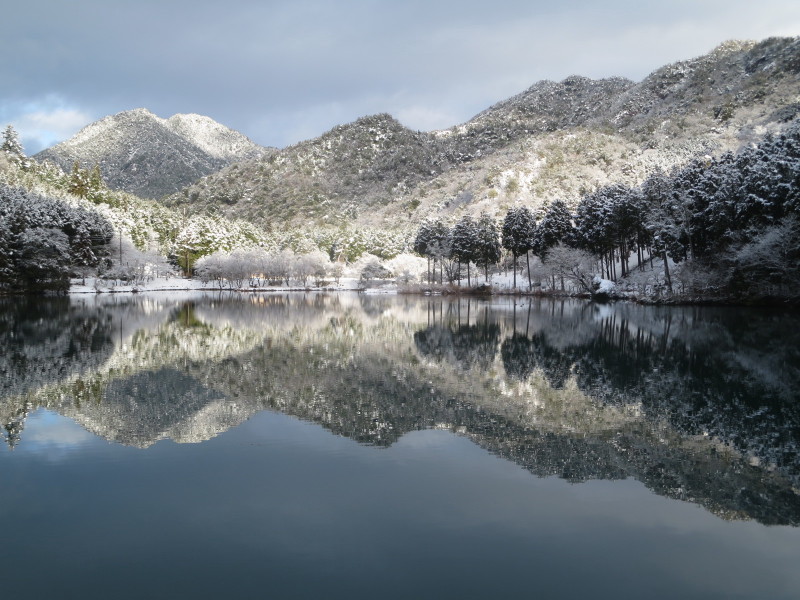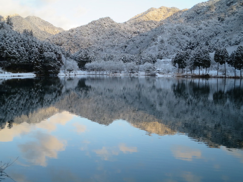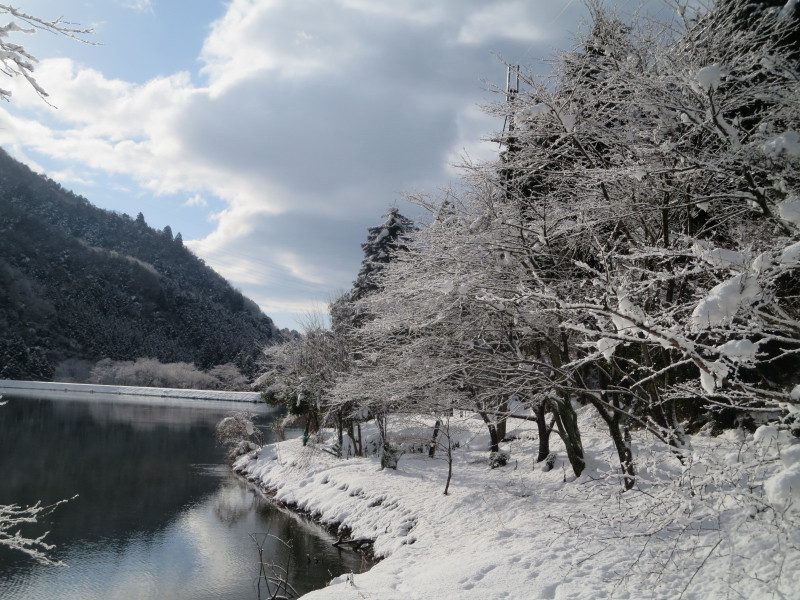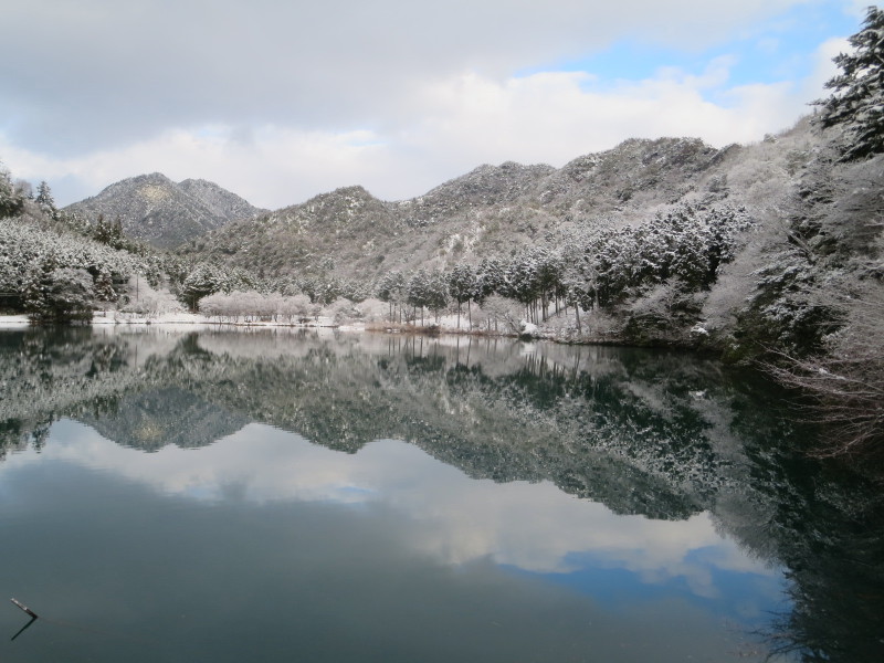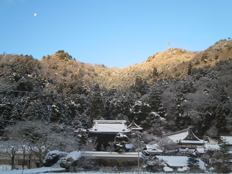 雪と月の金剛城寺。奥池に向かうときの写真。