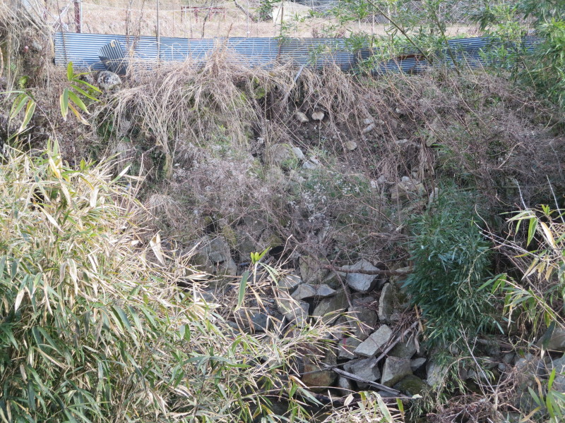 すぐ傍では川の石積みが崩れてます。