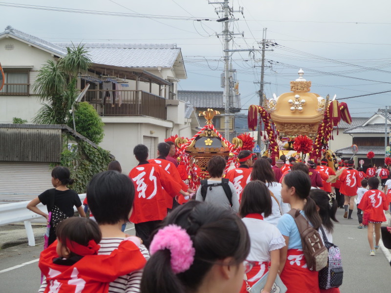 宵宮は村周り。子供みこしと一緒に新町を一周します。