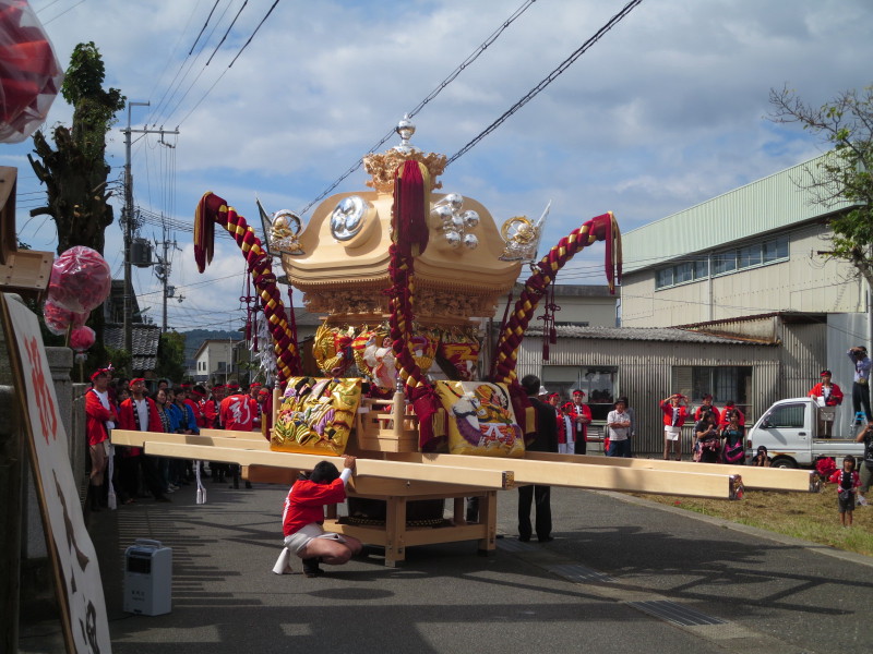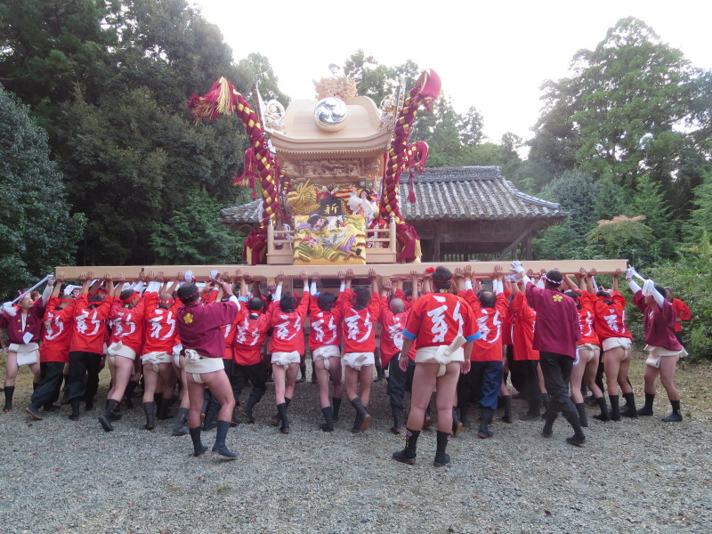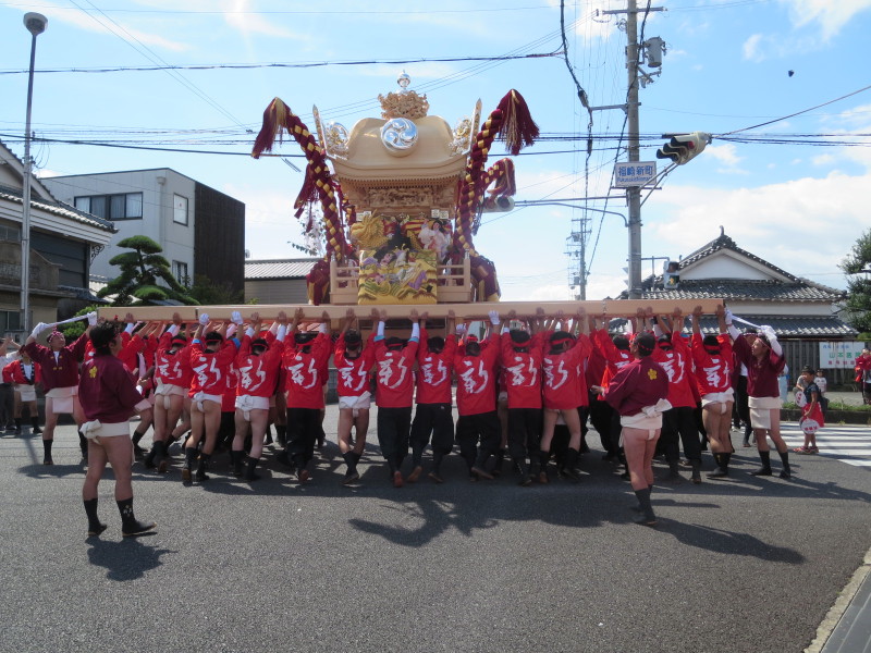 神事の後、区内を丁寧に巡回、本番さながらの練を見せました。