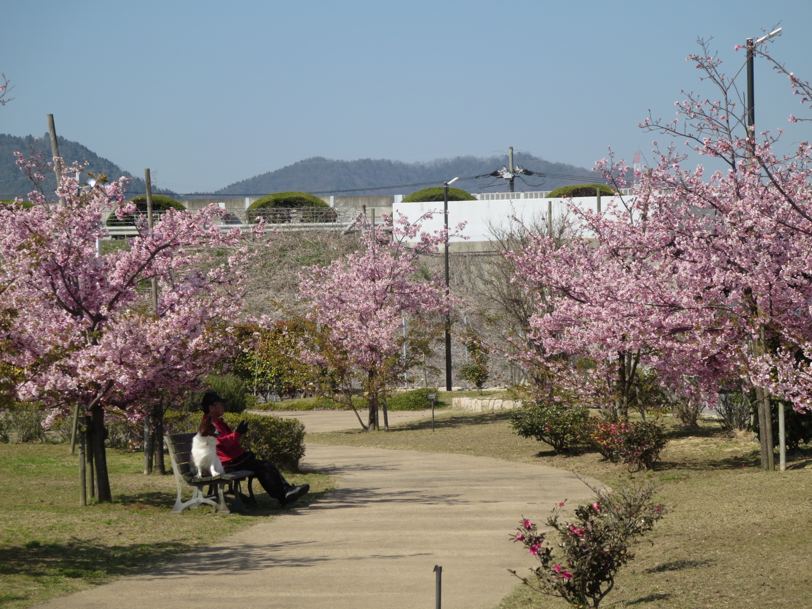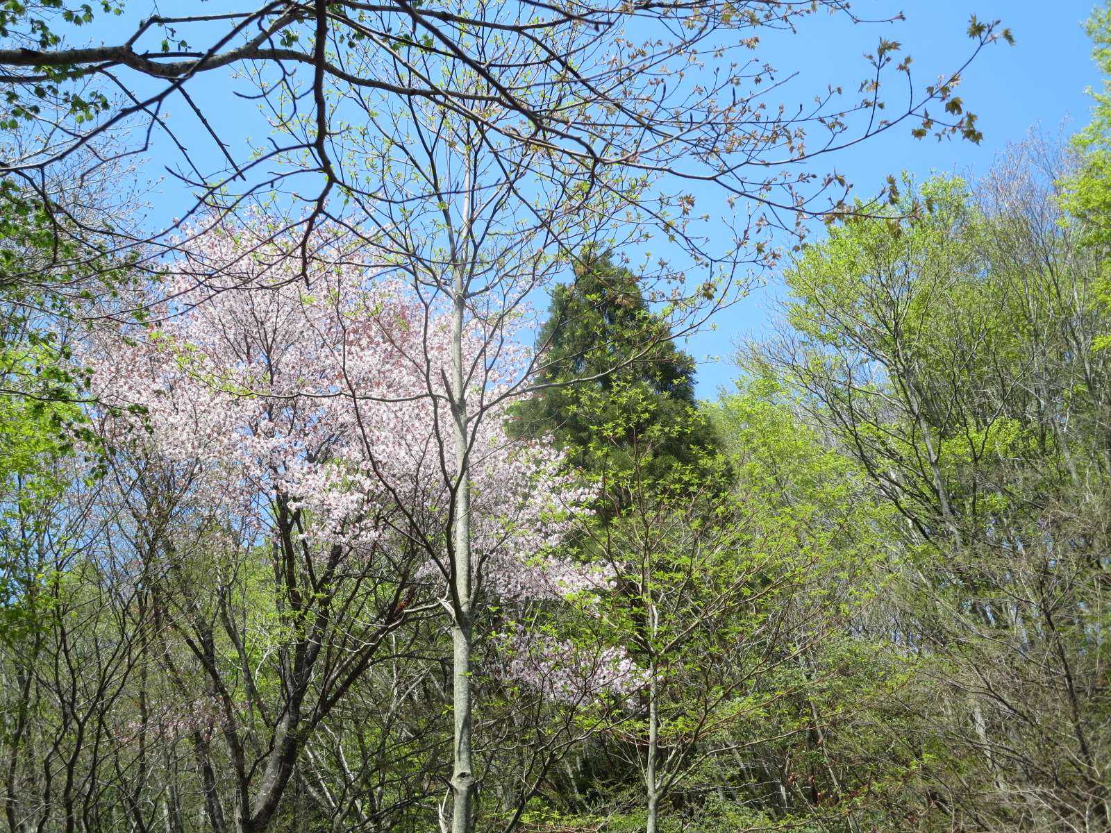 中国山地の標高1000m級では木々は新芽を出し、遅い桜と競演です。