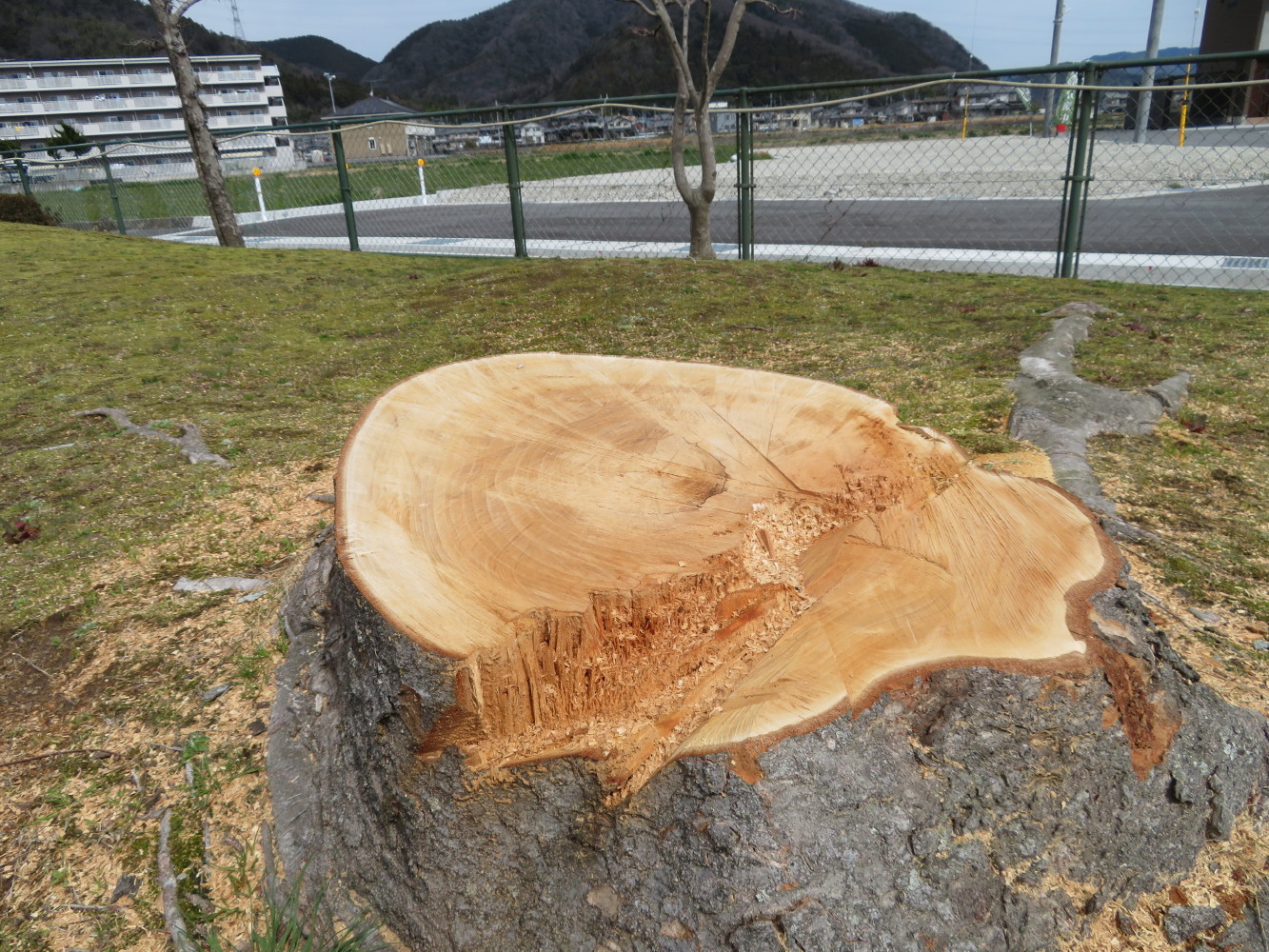 ケヤキが大きくなって葉が落ちるので付近に迷惑がかかるためとか・・