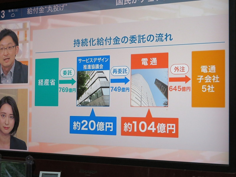 持続化給付金の事務が民間に委託され、下請けにされている。