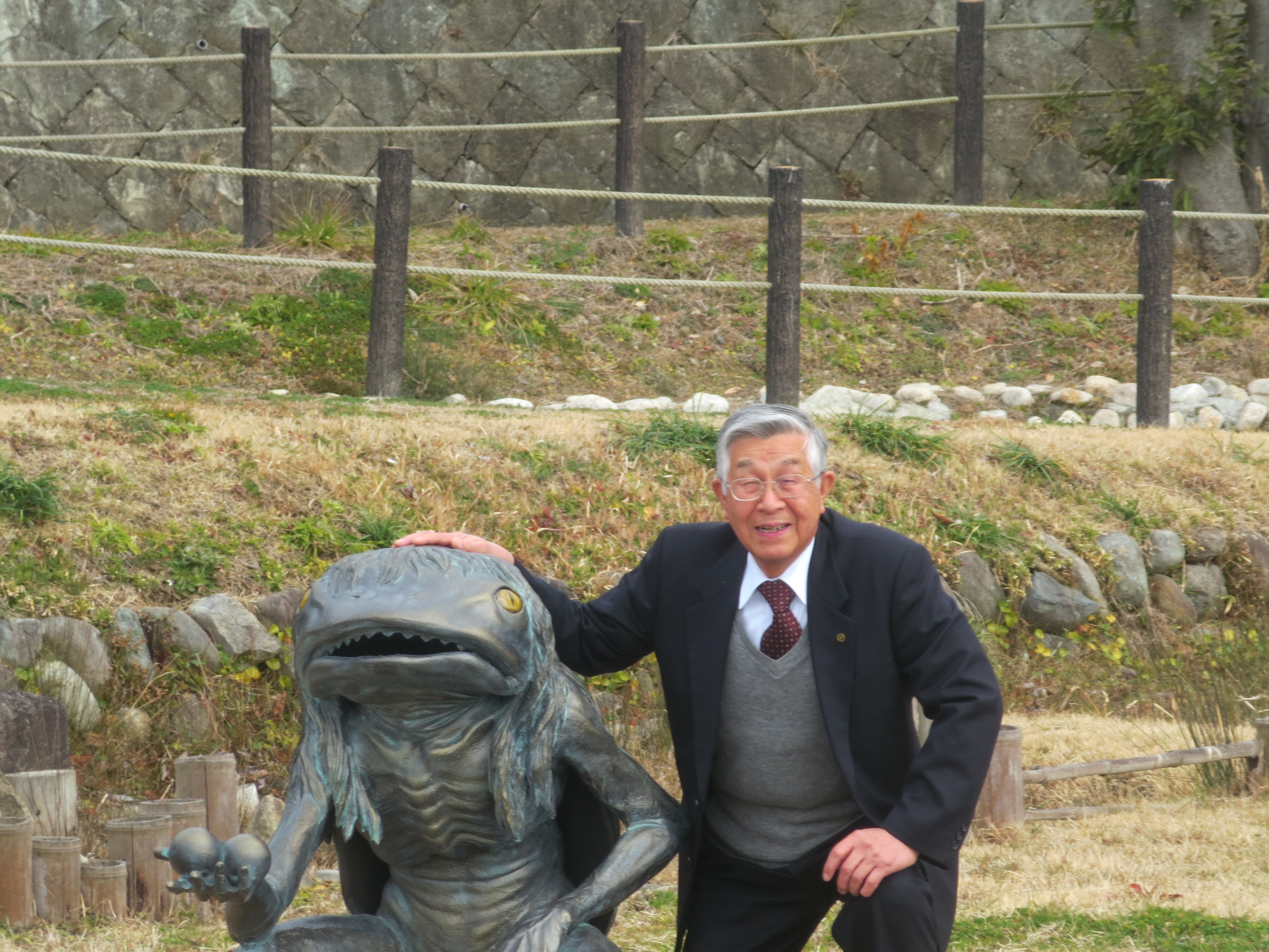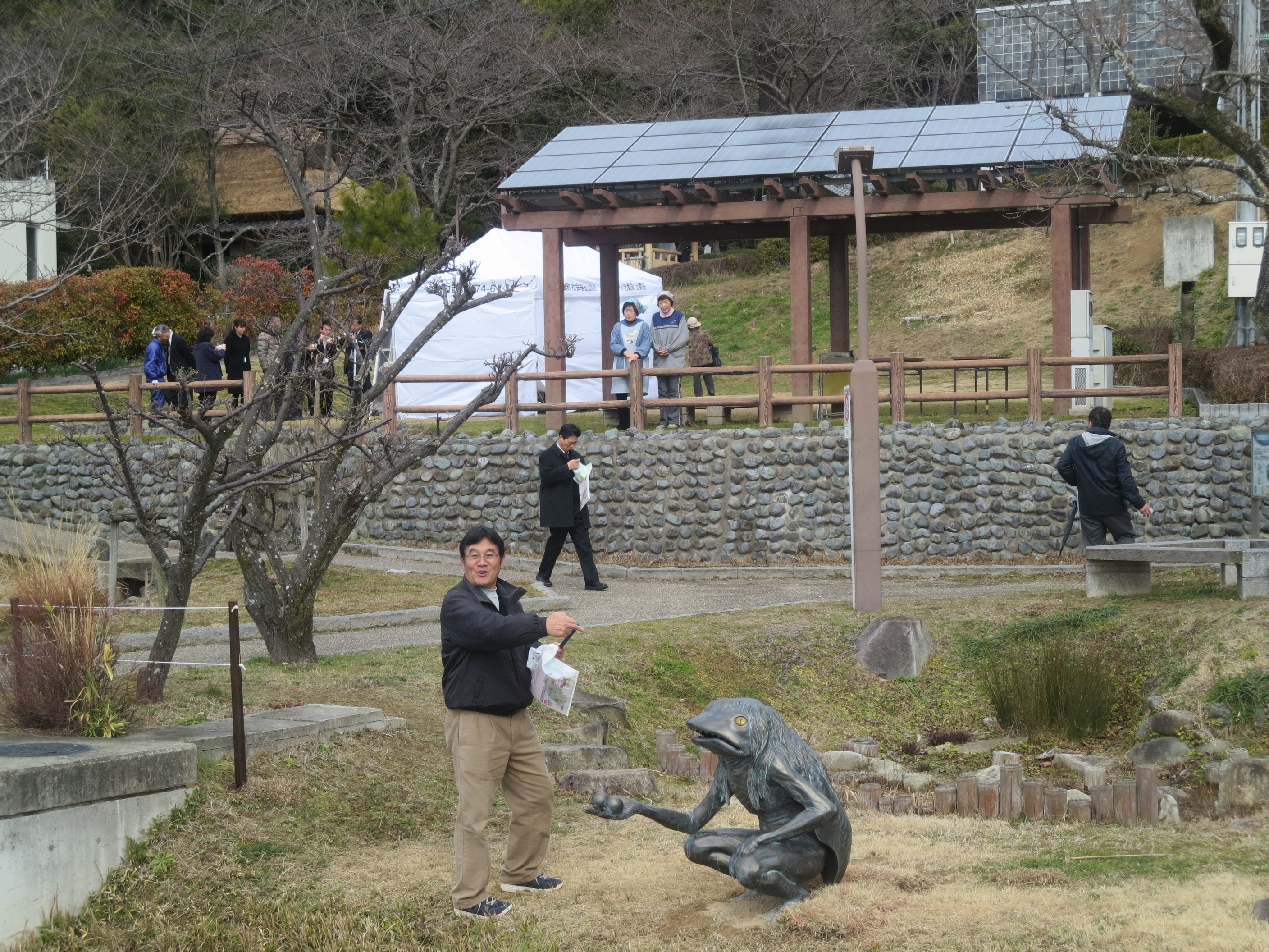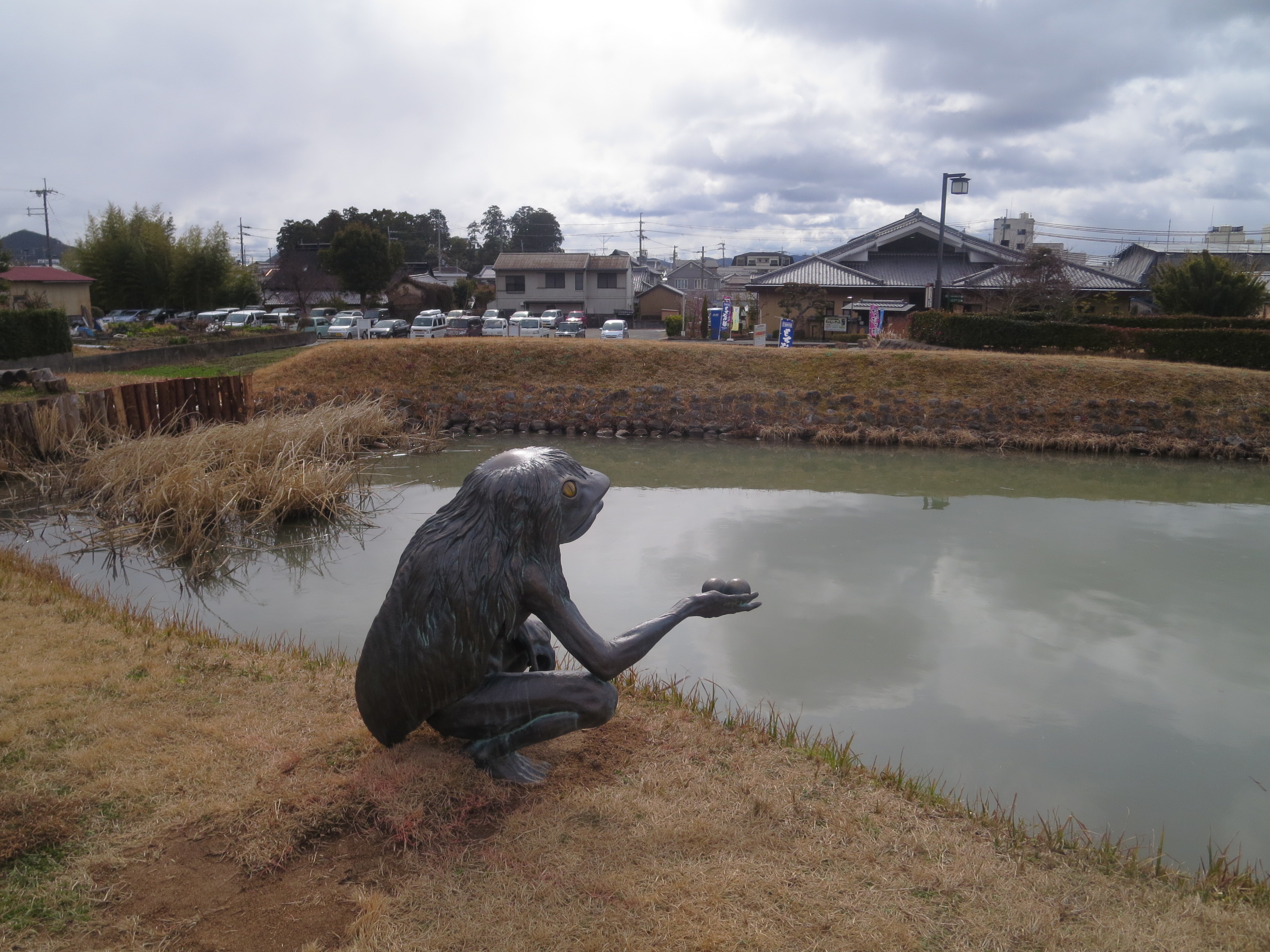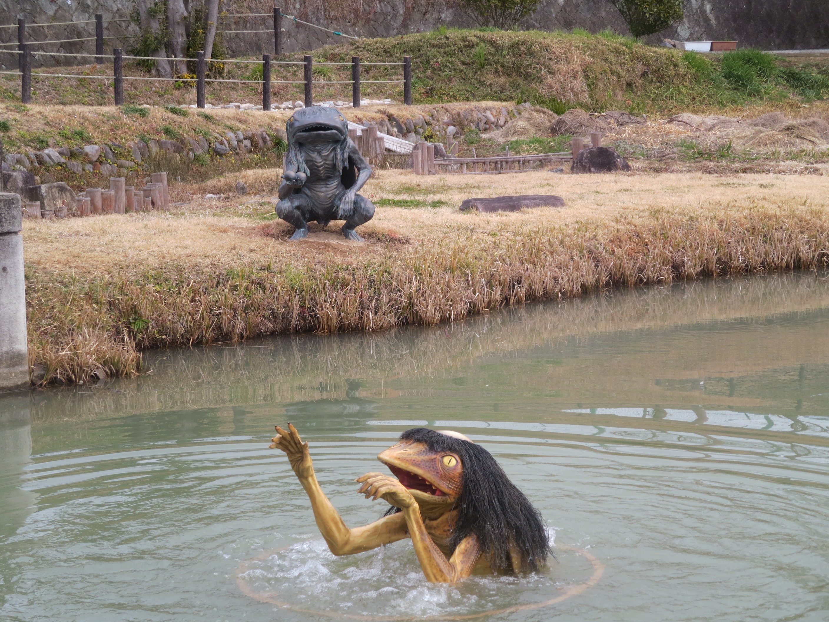 もちむぎの館の池にカッパが現れました。