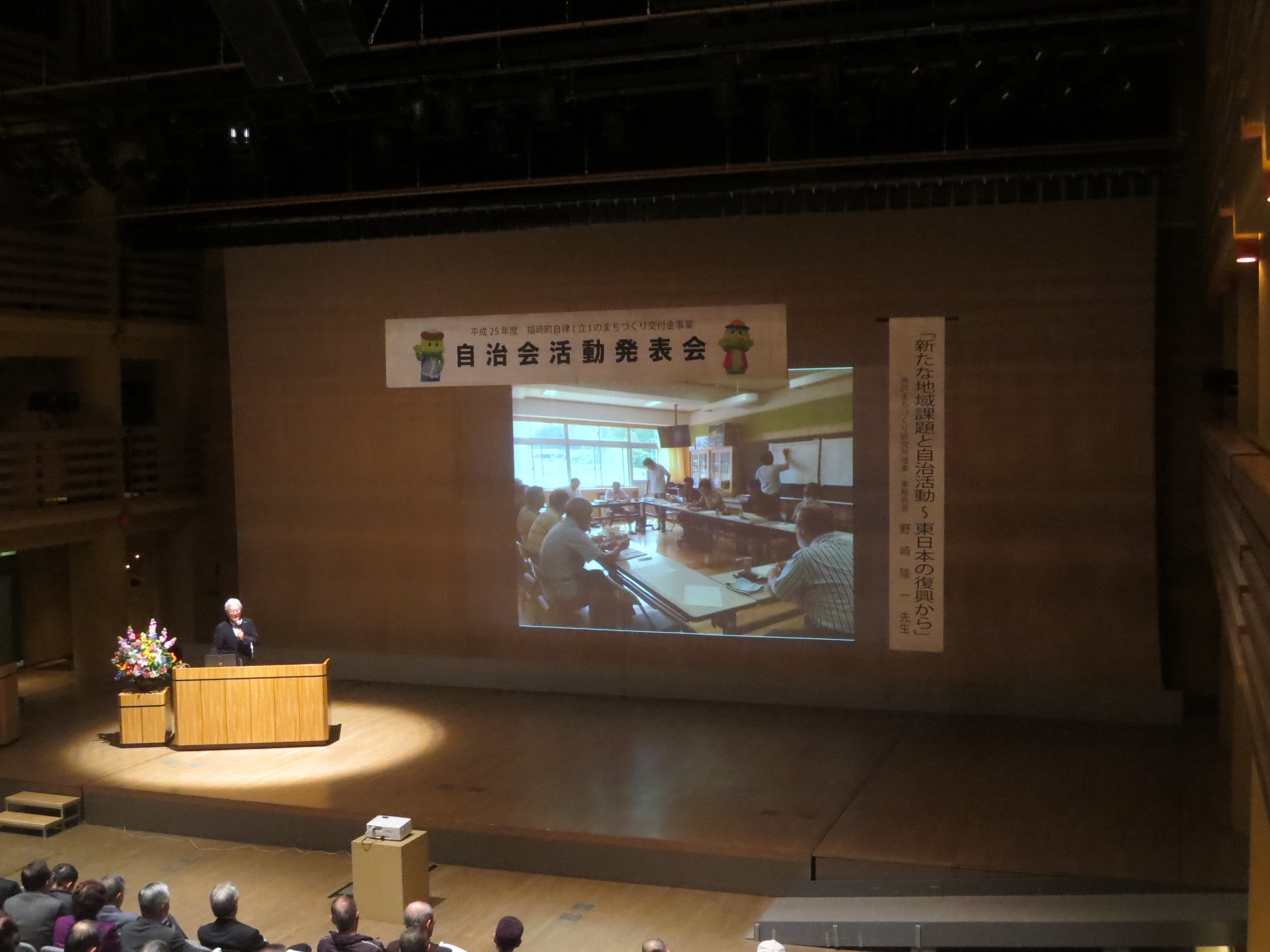 演題は「新たな地域課題と自治活動~東日本の復興から」