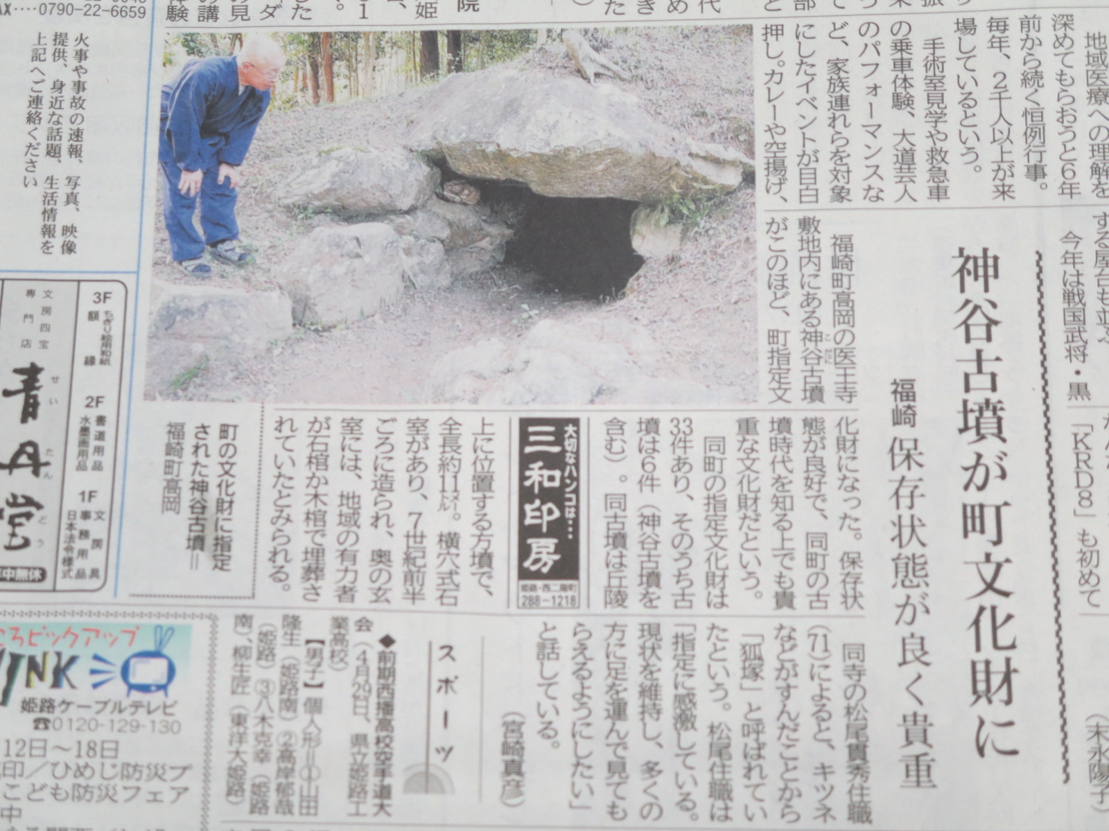 福崎町高岡の神谷(こだに)古墳がこのほど町文化財に指定が決定しました 。