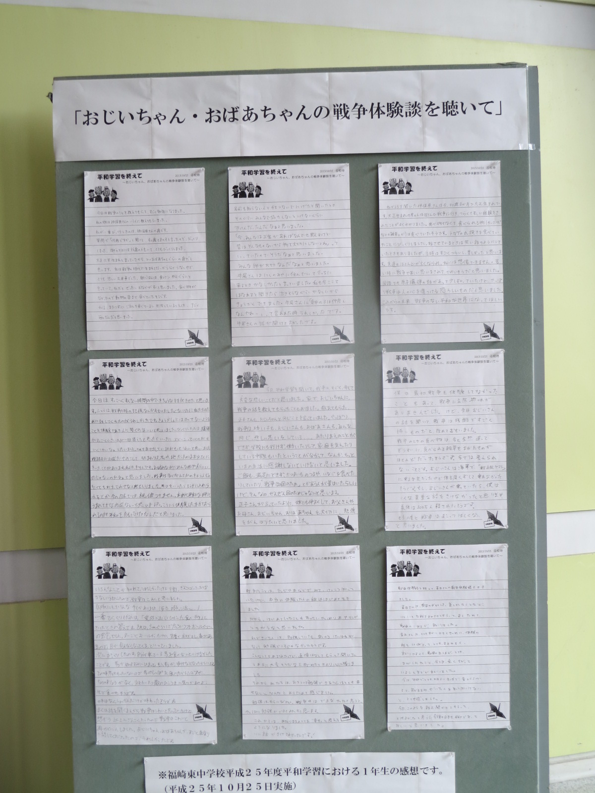 会場のエルデホールには戦争体験を聞いた感想文が掲示してありました。
