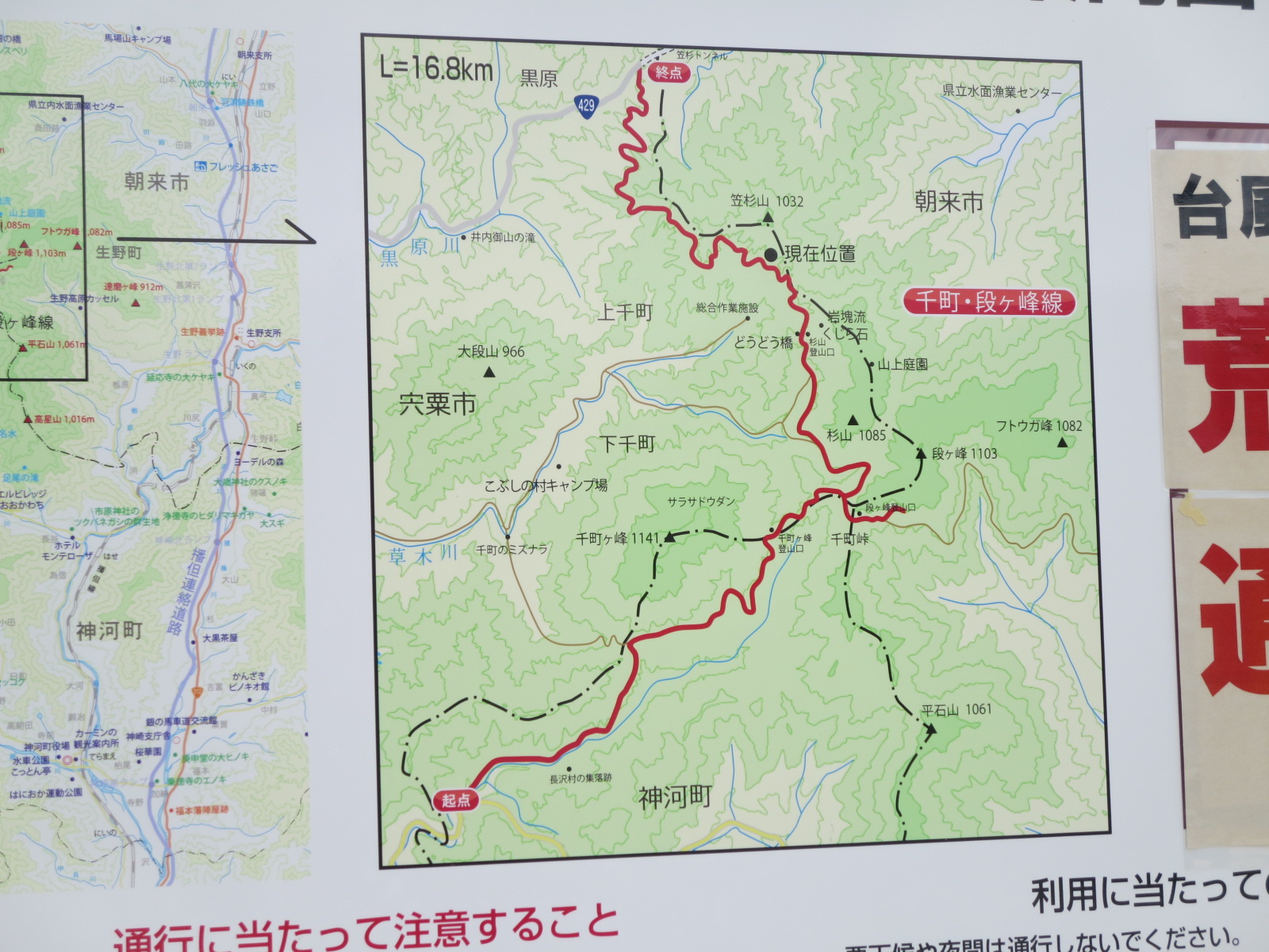 林道千町・段ヶ峰線の千町岩塊流付近に設置されています。