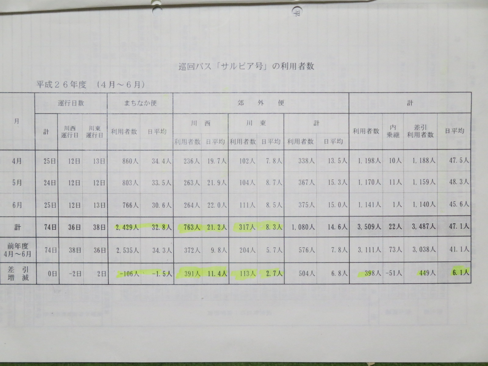 まちなか便は、2429人で昨年より106人のマイナスになりました。