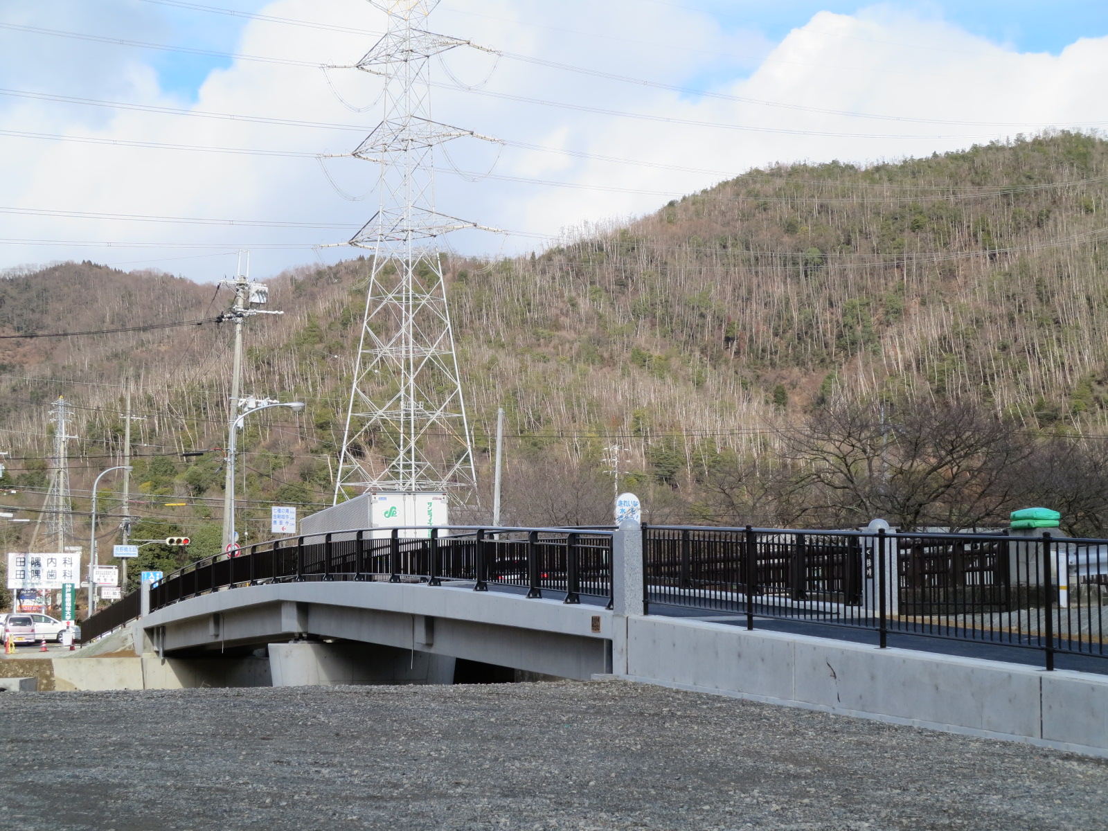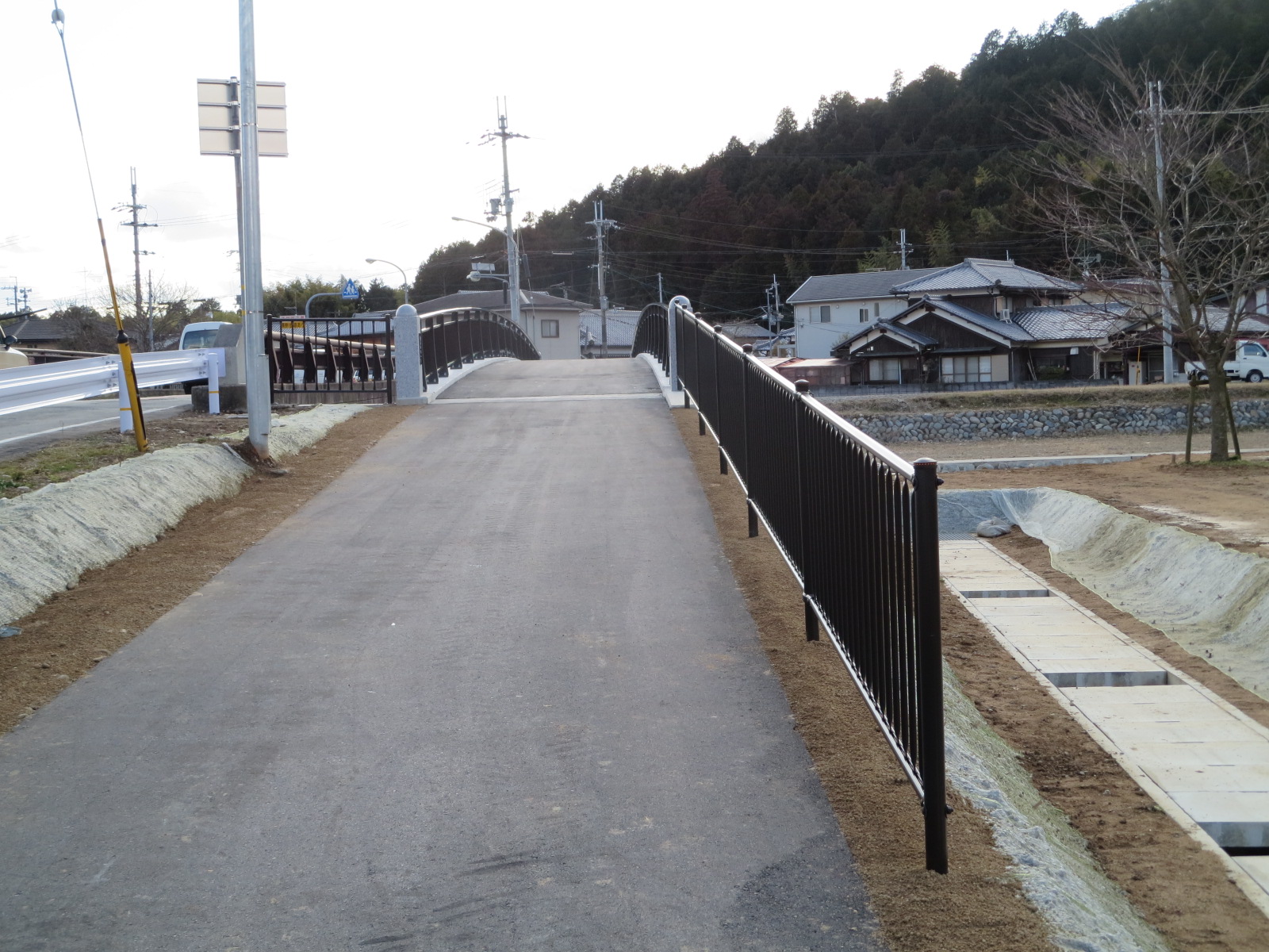 福崎町の高岡小学校や西中学校の通学道路でもある長野橋の歩道橋工事が完了形態です。