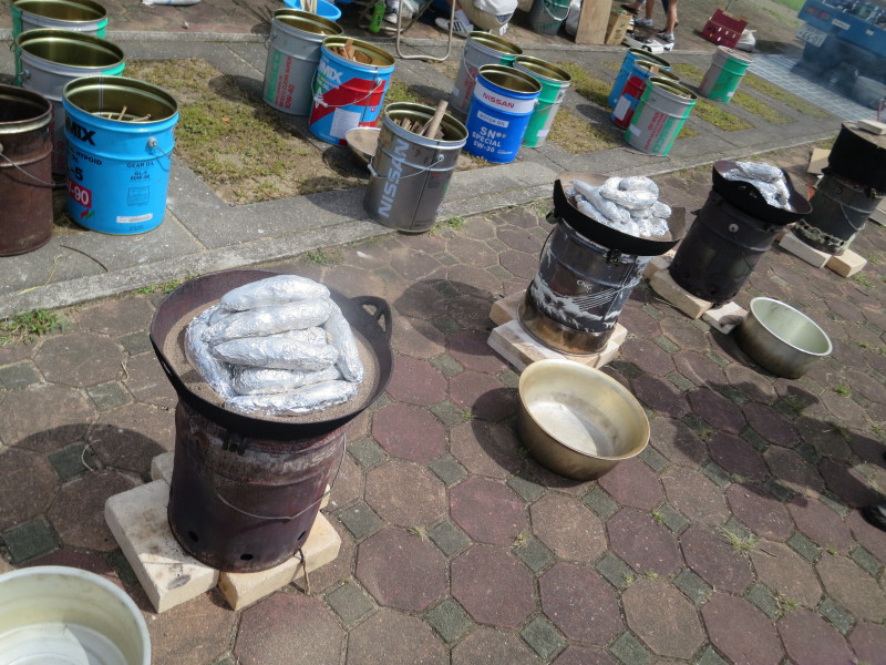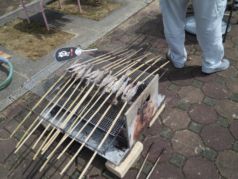 紙芝居に続き、アマゴをつかみ、塩焼きに、石焼イモもあって楽しさ5倍!!