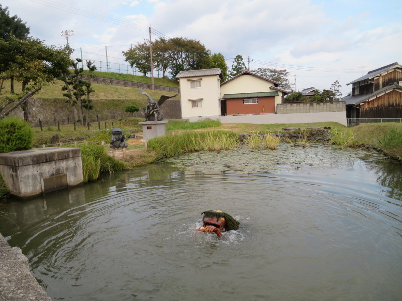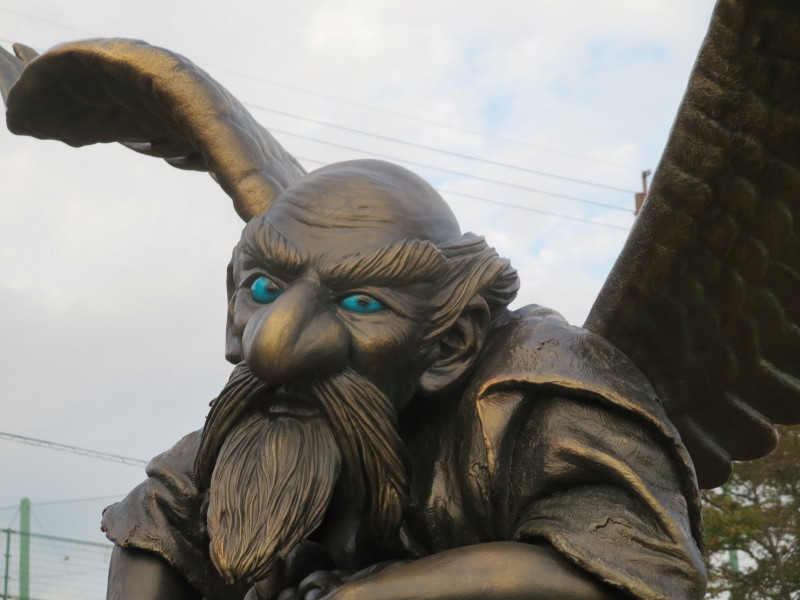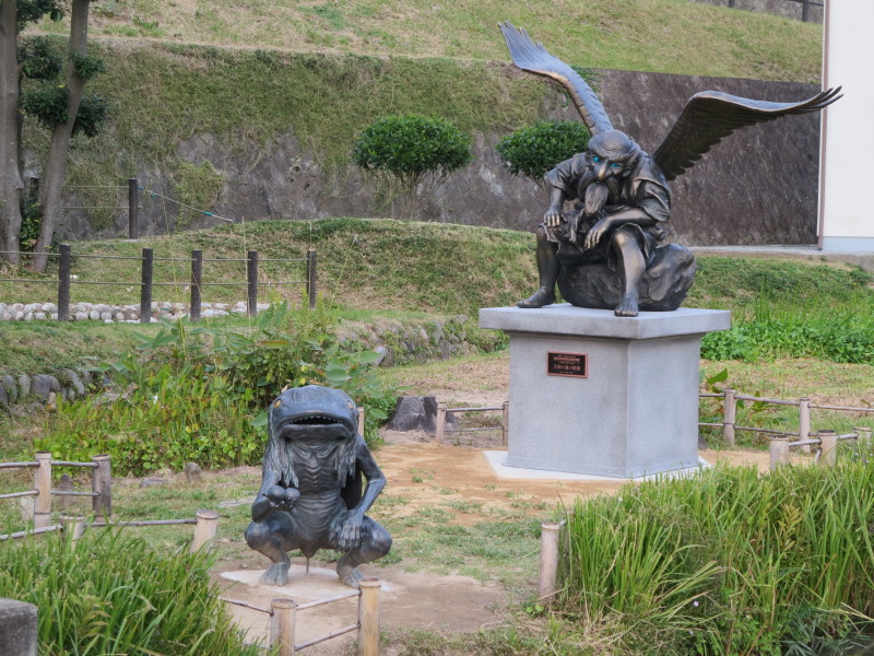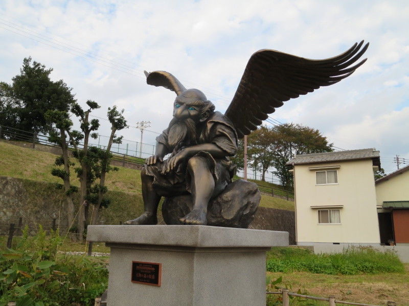 昨年、福崎町が公募した妖怪天狗が像になって設置です。