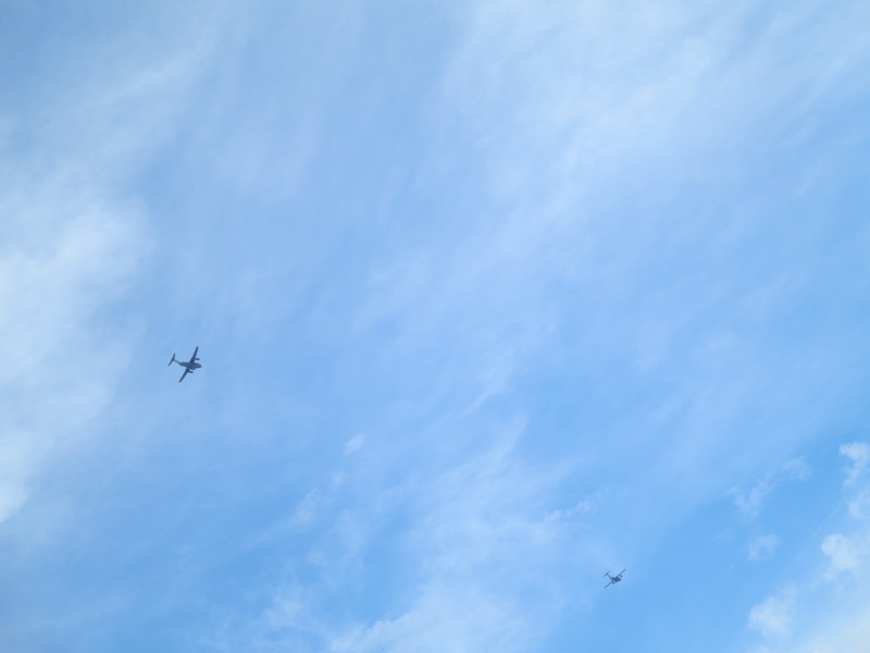 16日、午後3時前、福崎の上をゆっくりと低空飛行の2機。