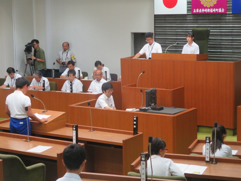 20日、福崎町の60周年を記念して子ども議会が開催。
