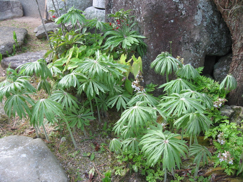 自然種のしゃくなげ                             やぶれ笠の陰に碇草