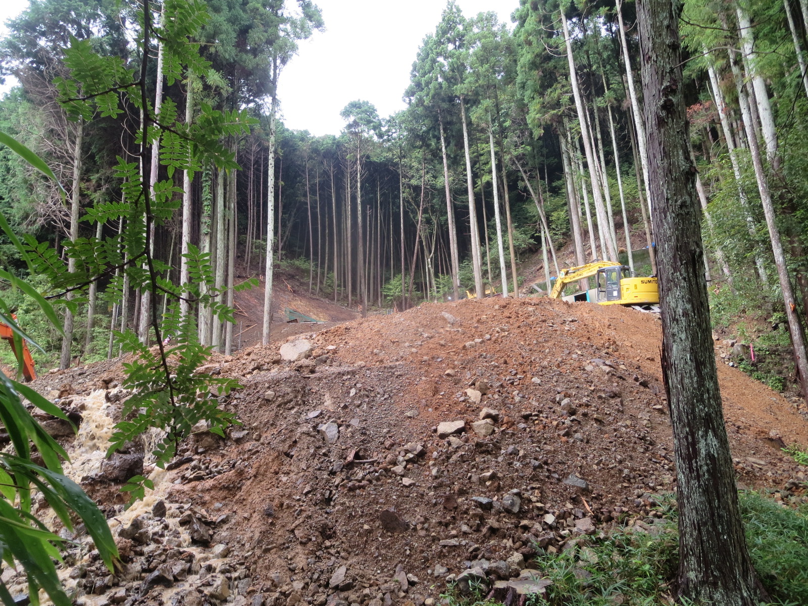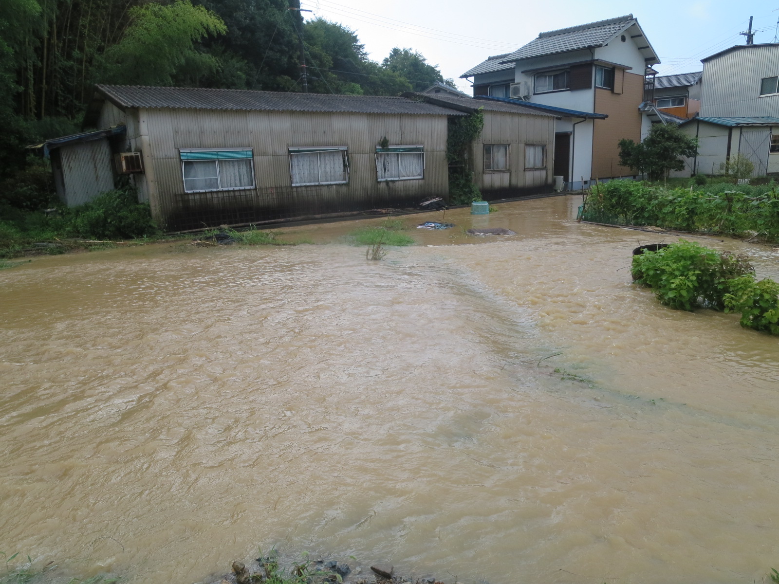 金剛城寺境内に流れ込んだ濁流で庭が大変な状態に・・