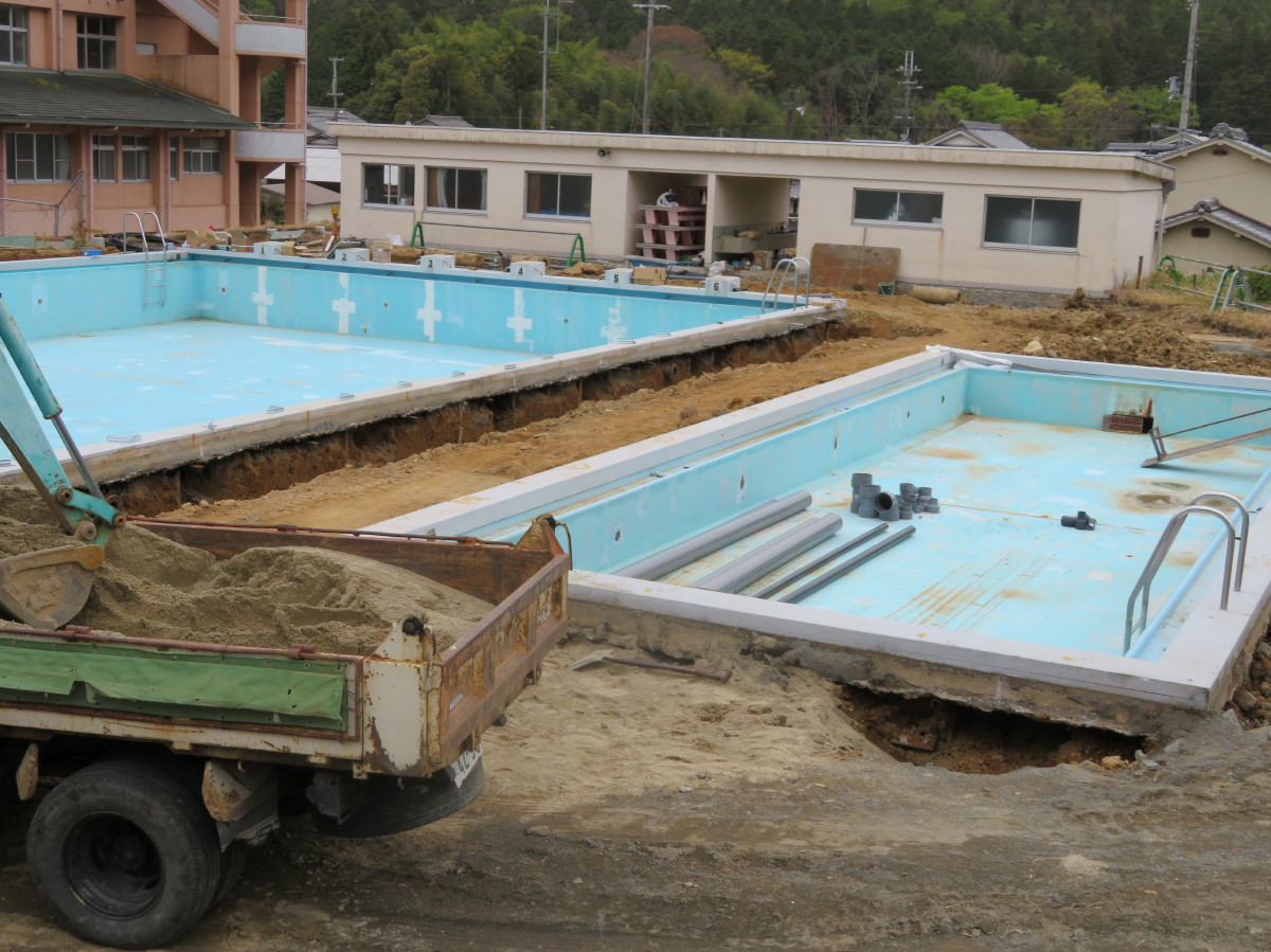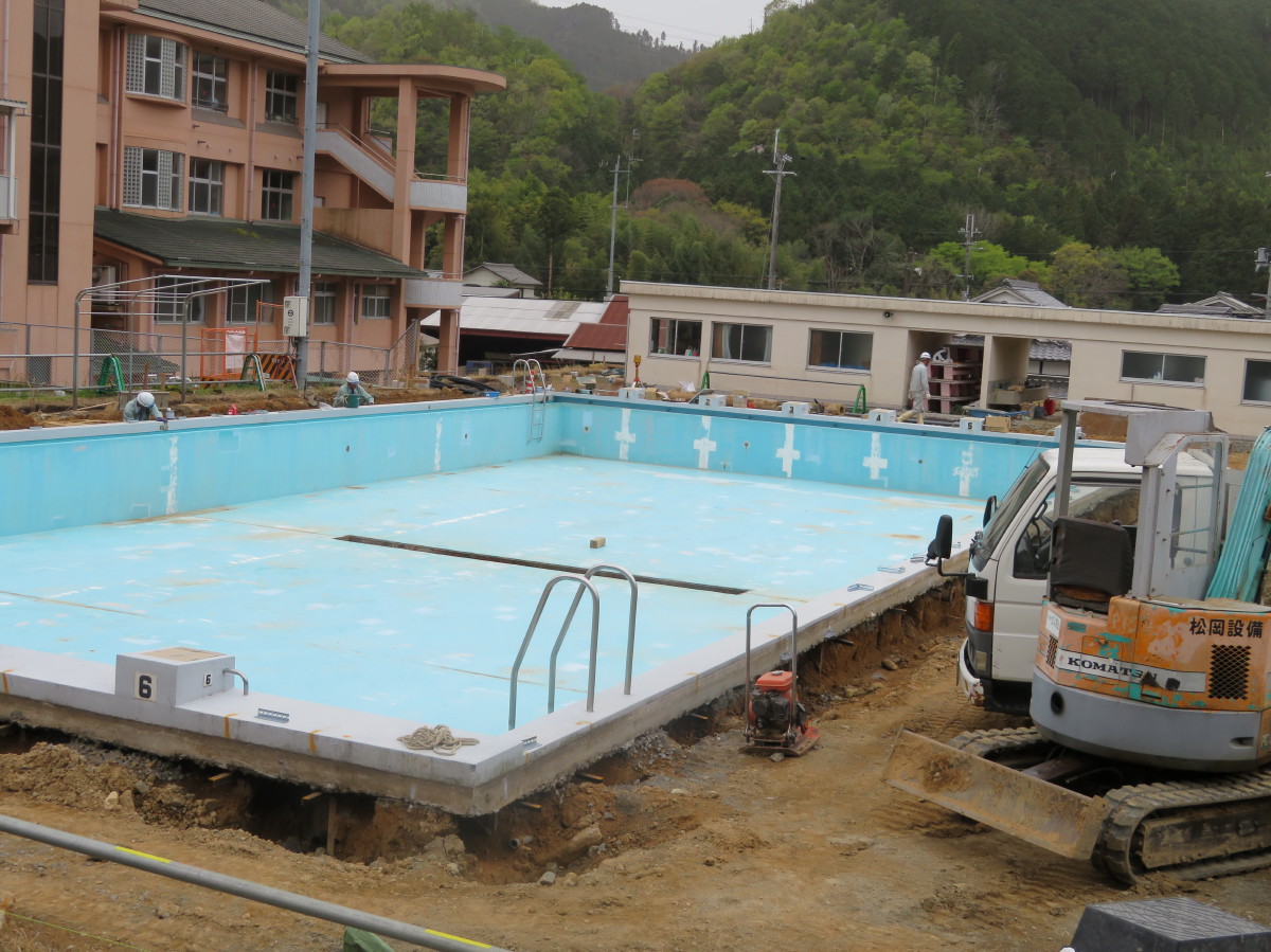 高岡小学校のプール改修工事を見てきました。