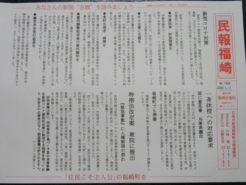 福崎町でも感染者が・・という事で生活に制約が出てきました。