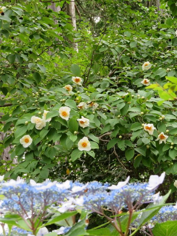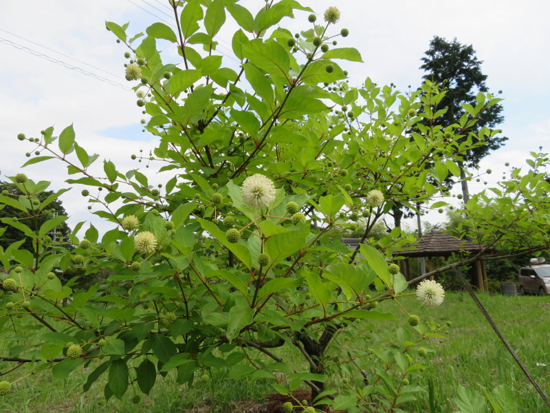 前の畑には「谷渡しの木」があり、コロナ状の花が付いています。