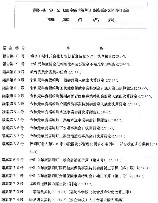 ’20年度の補正予算、工事請負契約の承認などです。