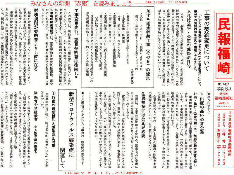 9月義議会の一般質問の内容を「民報福崎」に編集しました。