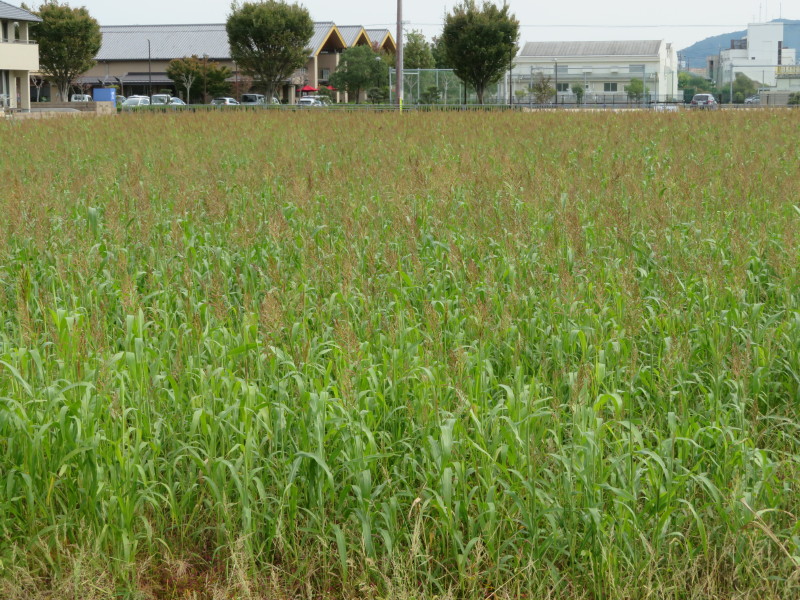 圃場整備後の大きな区画の田圃にコスモスが満開です。