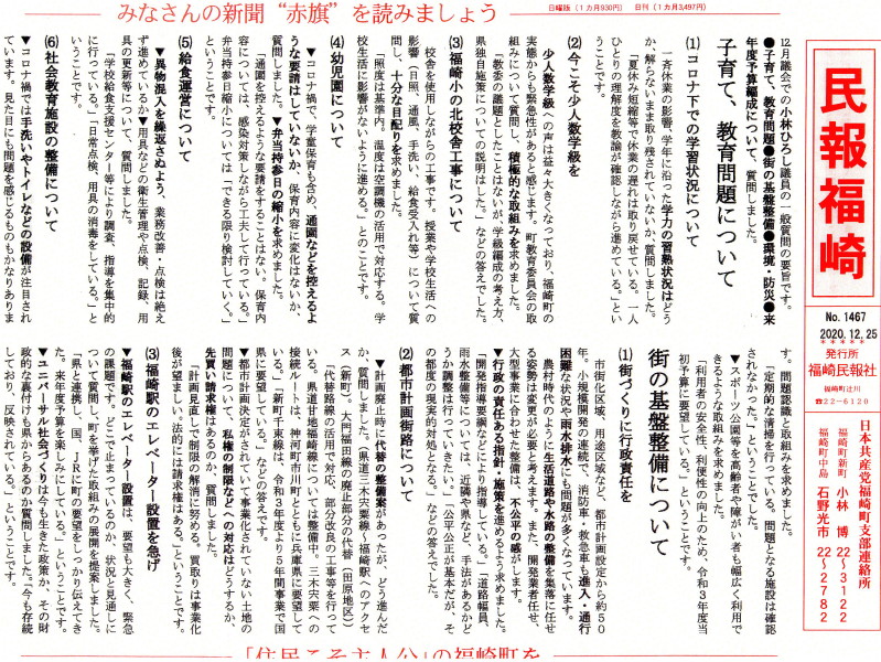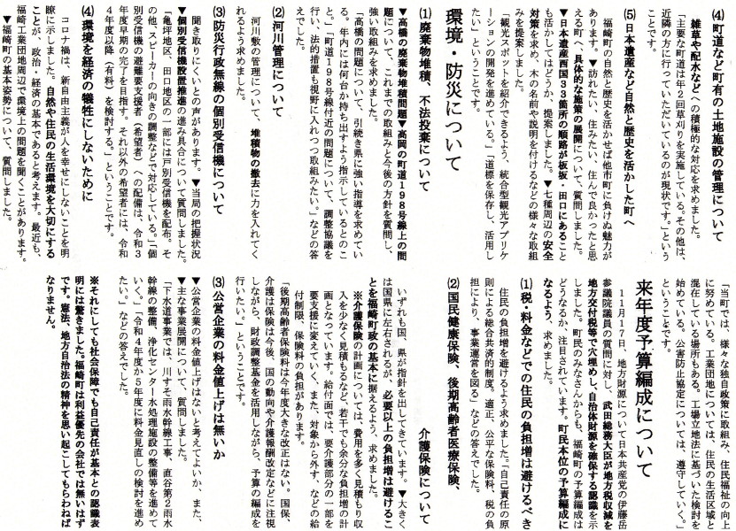 12月定例議会の一般質問の概要を民報福崎で報告です。