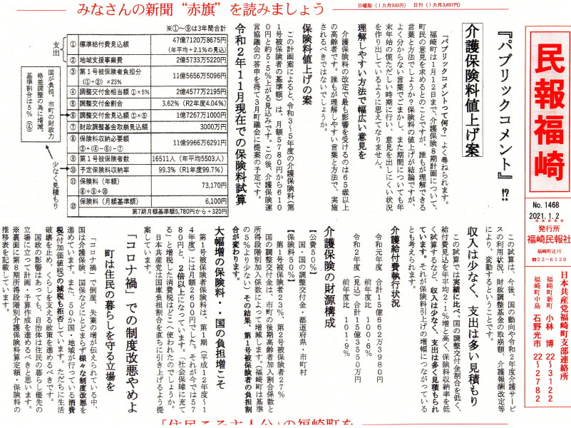 介護保険料の引上げで意見募集と書けないかな~~