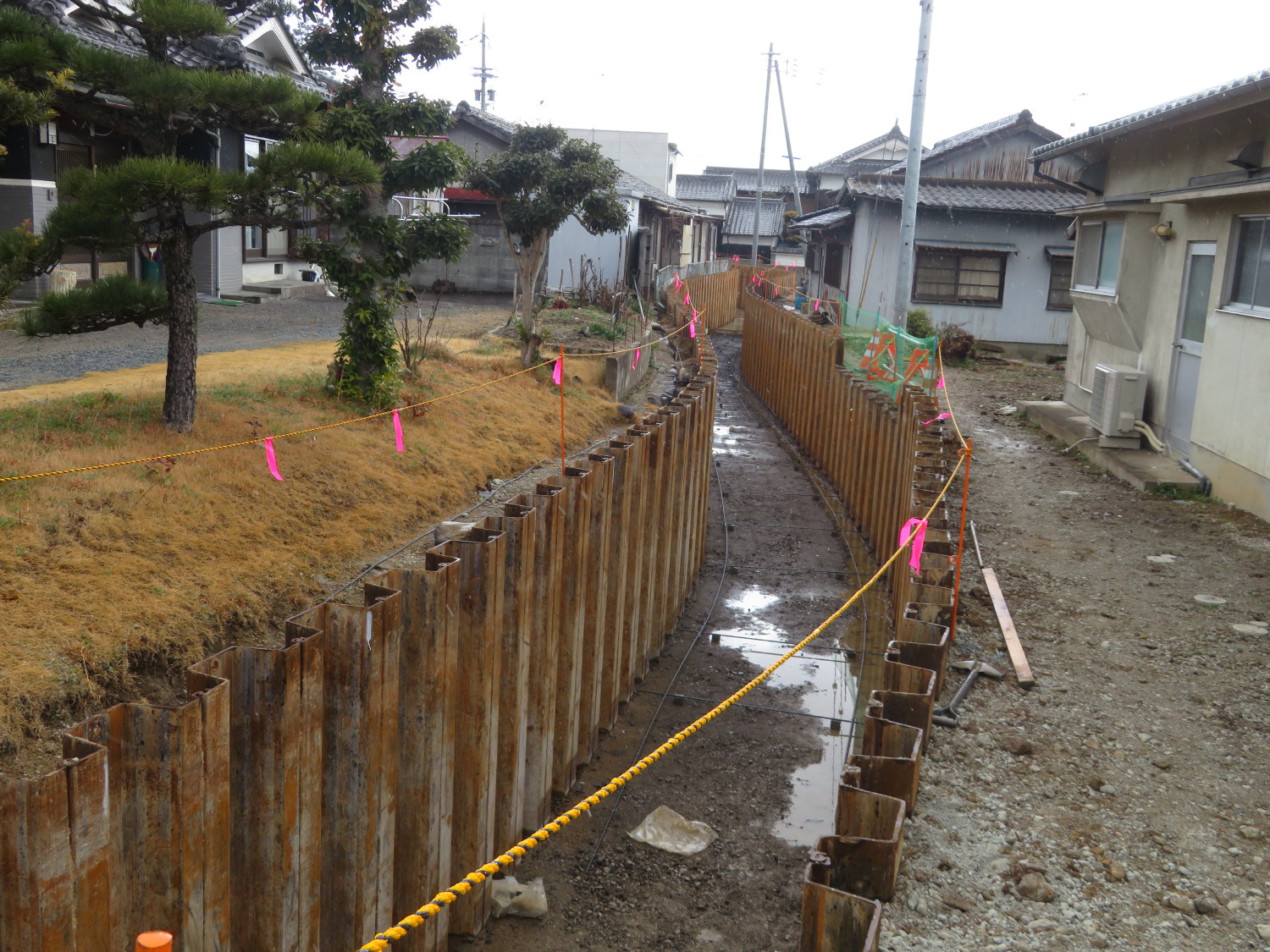 福田地区の住吉神社前から七種川の河川の整備工事です。
