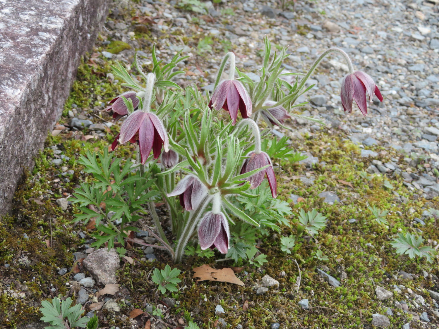 桜が咲き、オキナ草も花をつけています。