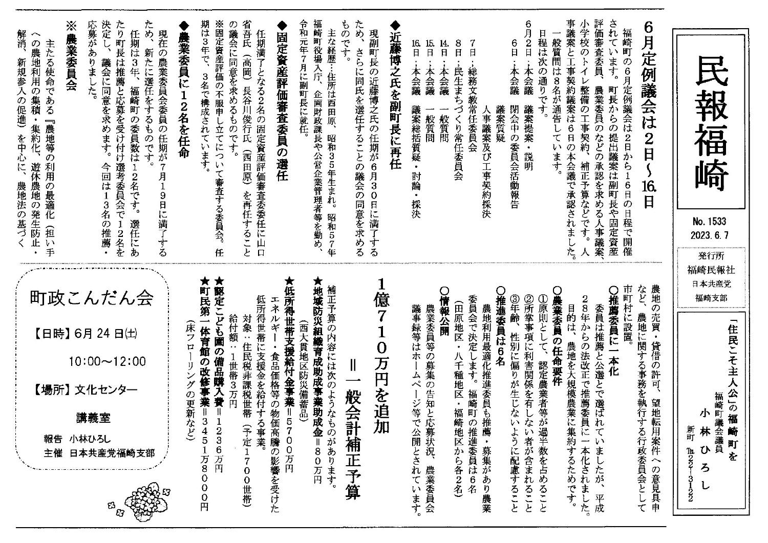 副町長や固定資産評価審査委員、農業委員の選任です。
