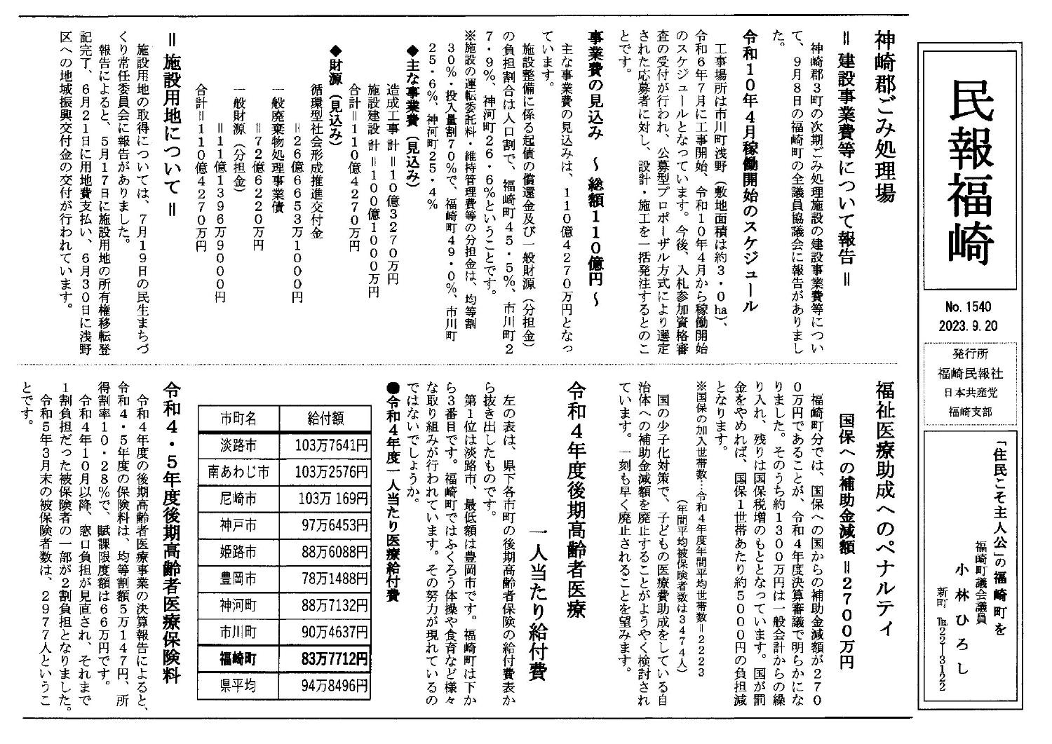 神崎郡のごみ焼却施設建設の総額が100億円を超える見込みとなりました。