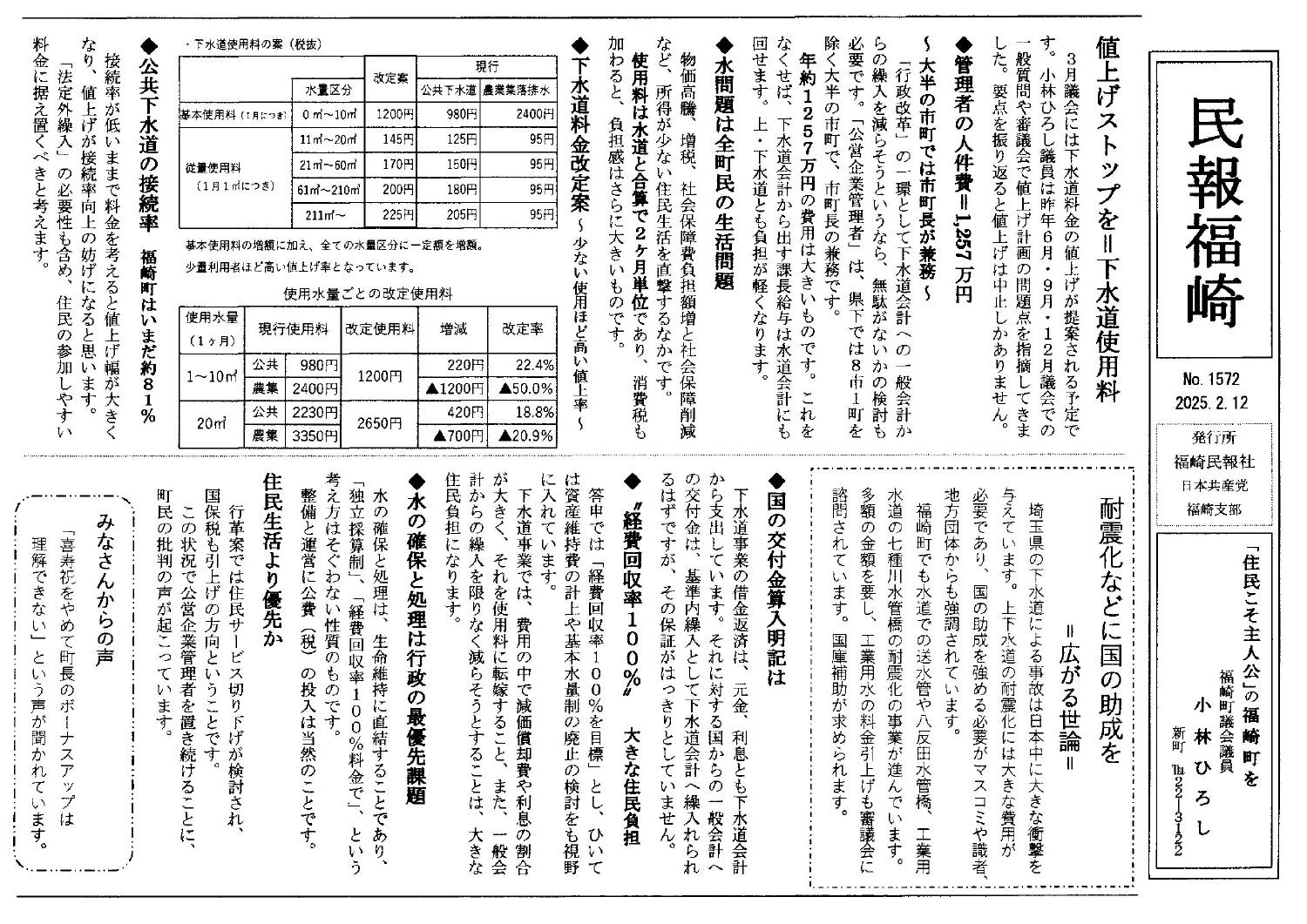 どう考えても下水道料金の値上げは不当です。