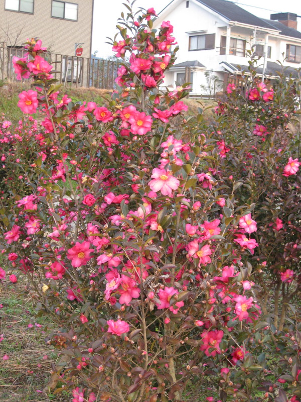 河川公園の北端に咲く山茶花です。