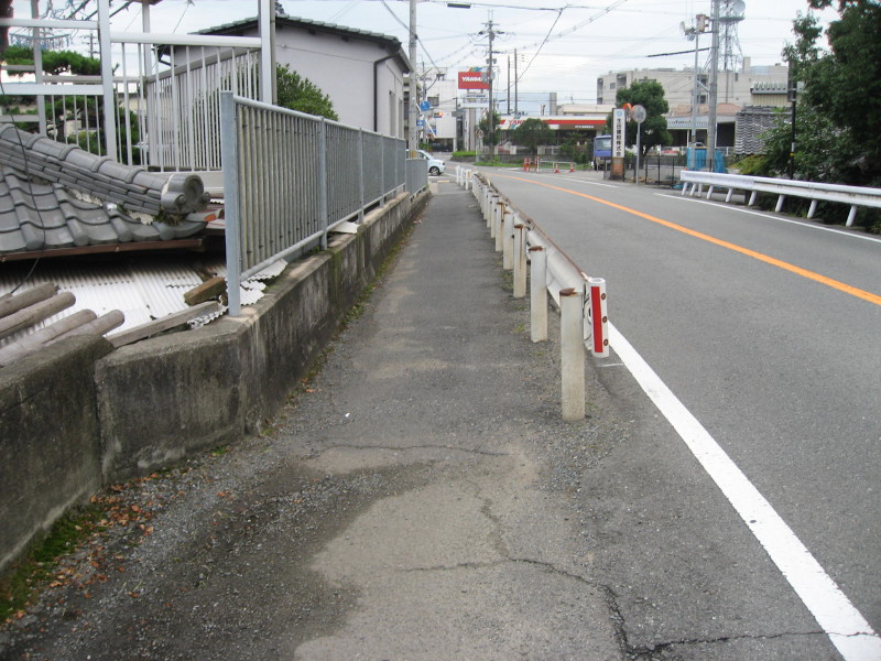 国道にも関わらず、神崎橋とその両側には歩道が部分的に片側しか無いことから、橋の両端で横断する必要と、横断しないで辻川西交差点までの間が危険です。