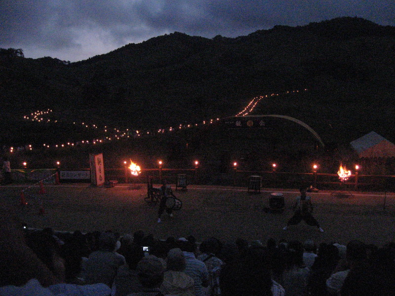 篝火と小松明、350本に火がつけられ雰囲気が出てきました