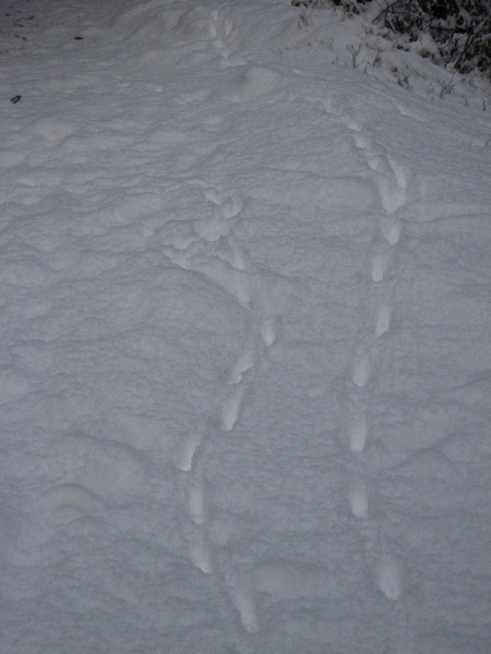 鹿の親子の足跡のように見えますが・・・
