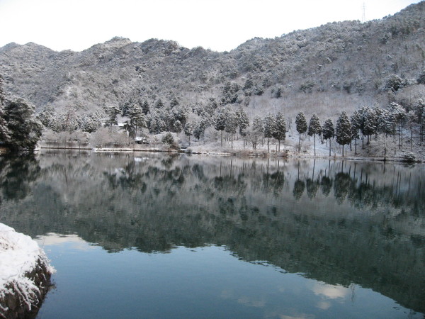 奥池に映える雪の野外センター