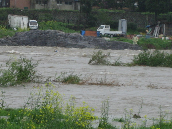 12日朝、市川の増水