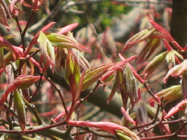 モミジも新芽です。この時から紅と緑のあり、それぞれ鮮やかでした