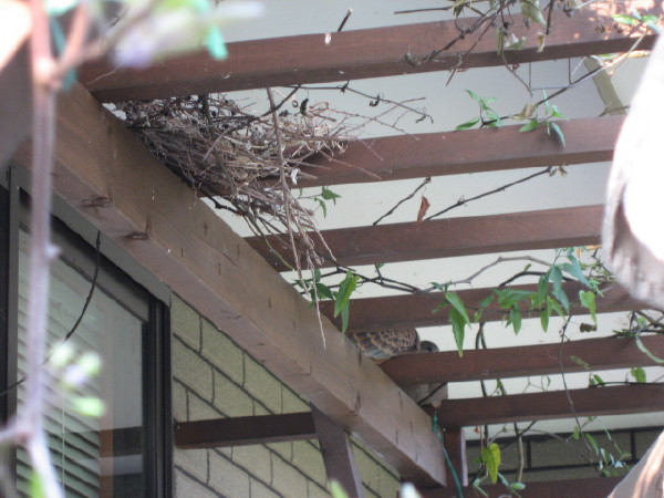 オープンガーデンに幼い鳩が2羽いました