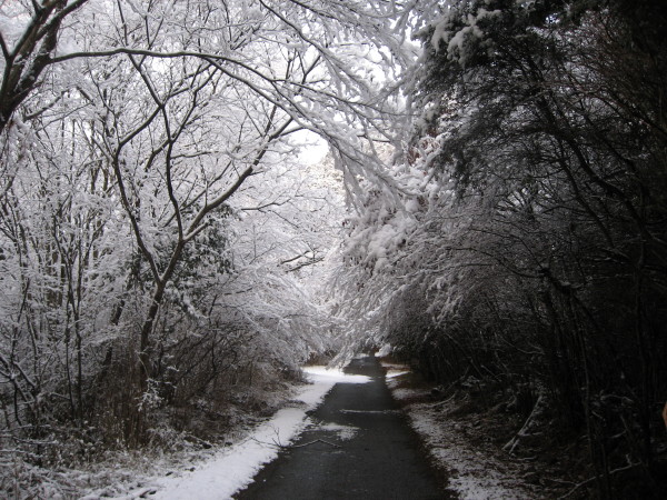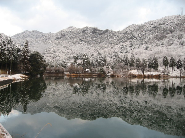2月15日朝7時過ぎ、雪をかぶった野外活動センターを望む景観