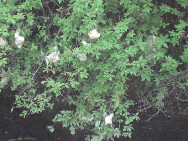 道端の小さな池で毎年モリアオガエルが卵塊を付けます。